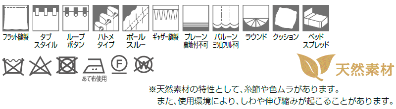 有効巾:150cm◯リピート/ タテ- cm ×ヨコ25.0cm ◯組成/ 綿100% ◯日本製 ◯寸法変化率/ ドライ:タテ-3%・ヨコ-1% ◯取扱い絵表示/T-A6 オーダーカーテンの縫製についてオーダーカーテンは、カーテンの生地を2倍使用して作った2倍ヒダカーテンと、1.5倍使用した1.5倍ヒダカーテンそして1.3倍使用したフラットカーテンがあります。