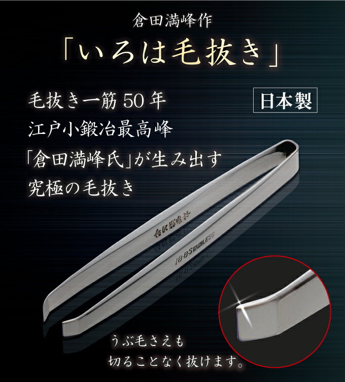 満峰作 最高級いろは毛抜き相磨き8cmいろは毛抜き 倉田満峰 最高級毛抜き 毛抜き 毛抜きピンセット 日本製 毛抜き■商品詳細伝統の江戸毛抜職人・倉田満峰氏の手作りの最高級毛抜き。