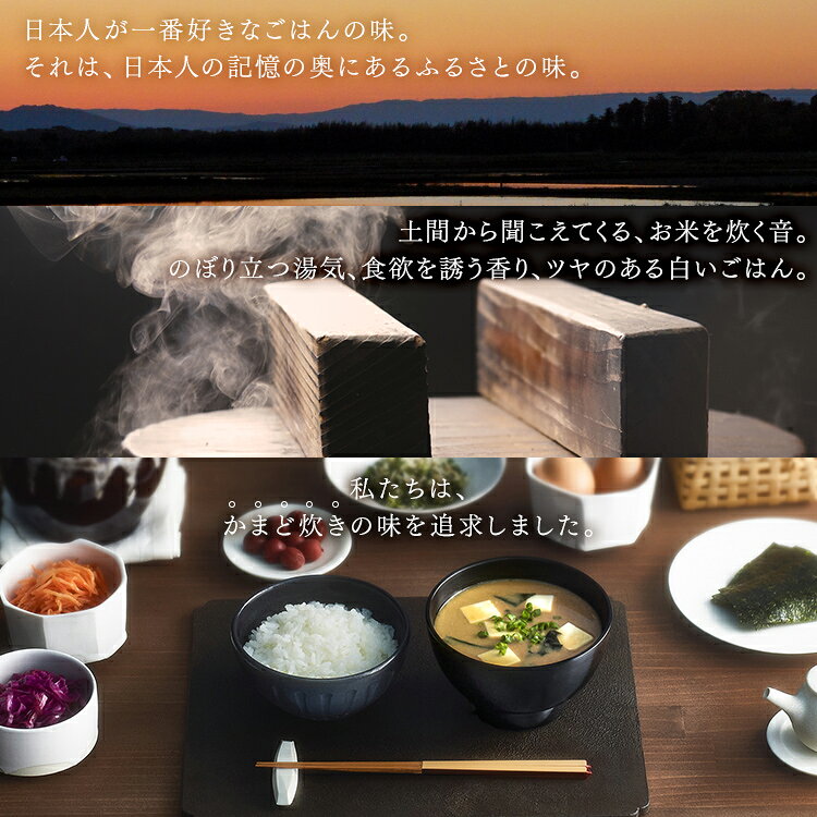 ◆ 本来の旨味を逃さないかまど炊きと同じく、お米をおどらせず炊き上げることで、お米を傷つけず、本来の旨味を逃がしません。