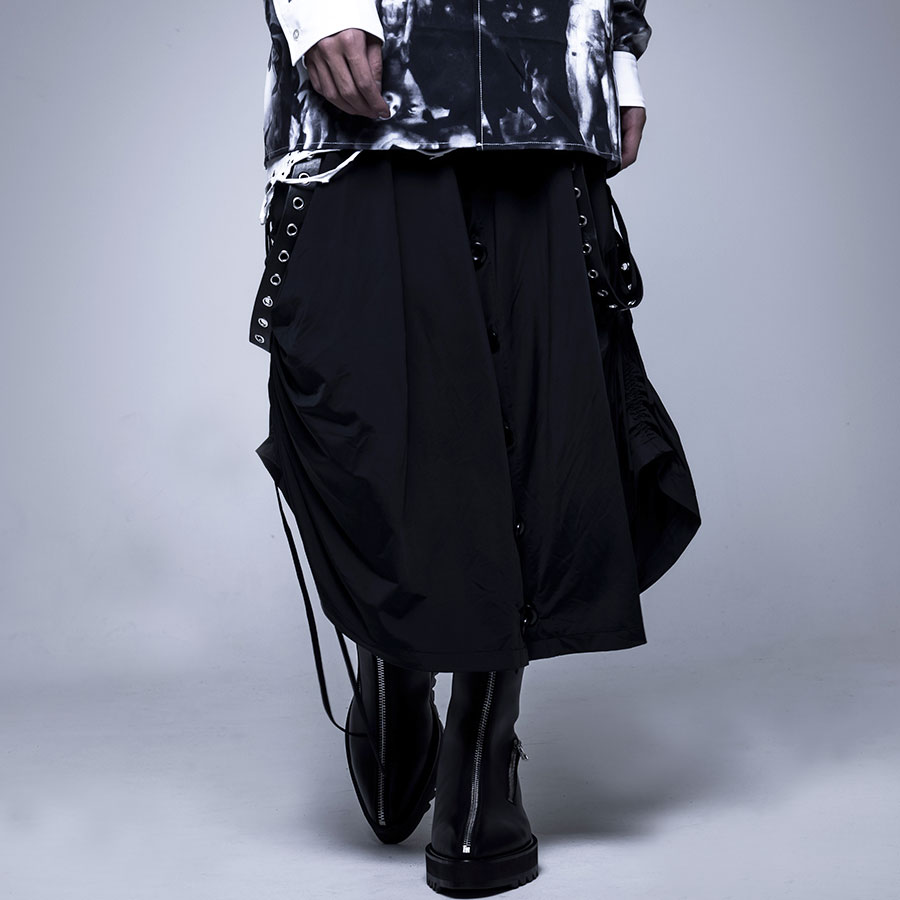 お客様により感じ方等異なる場合がございますので、あくまでもご参考としてご利用ください※ ワイドパンツ V系 ヴィジュアル系 ビジュアル系 モード系 メンズ パンク ファッション スカート ハカマパンツ タイパンツ パンツ 病み メンヘラ